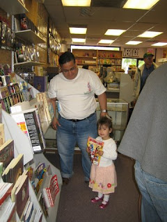 The kids continued reading in the van and we cruised over to Georgetown to visit Big Planet's Dumbarton Street store. Store owner Peter's known me for years, and let the kids pick up some more comics while not holding me to the store's limit of 10 freebies. However I dropped a hundred on sale books and toys, so I think he came out ahead. The store continues to have a good range of collections and indy material - perhaps the best selection of the three stores. There was a good crowd here too and Peter was happy with the turnout.