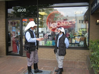 FCBD '07 was a rousing success. We saw over 400 people, and no one got fewer than 10 comics apiece. In previous years, we always had plenty of comics left over for the Taste of Bethesda, but this year, we were out by 4 PM. The 501st Battalion volunteered to chaperon us, and attracted the attentions of shoppers at the nearby farmer's market. We made a lot of folks happy sharing the joy of comics, and our sales increased by 15% for the best non-sale day in our history.